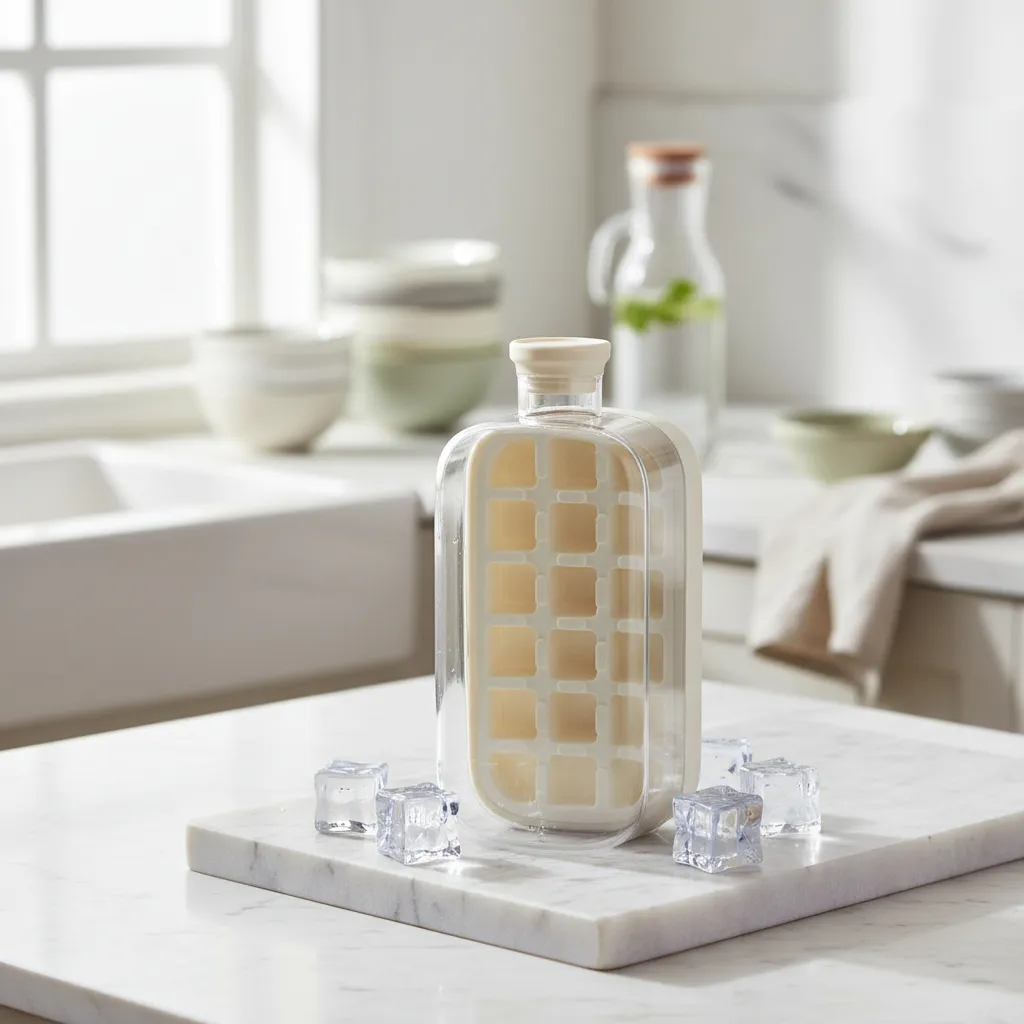 Solo tenés que llenarla hasta la marca indicada, colocarla en el freezer, y una vez congelada… ¡presioná la base! Los hielos caerán directamente en la botella, listos para enfriar tu bebida favorita.