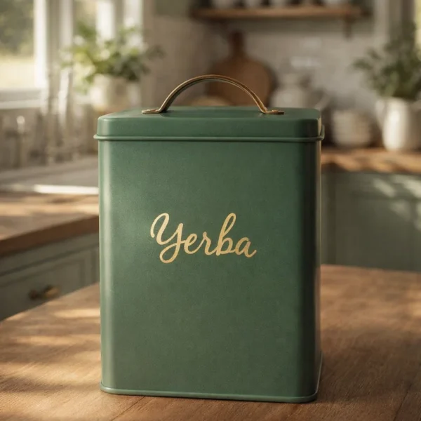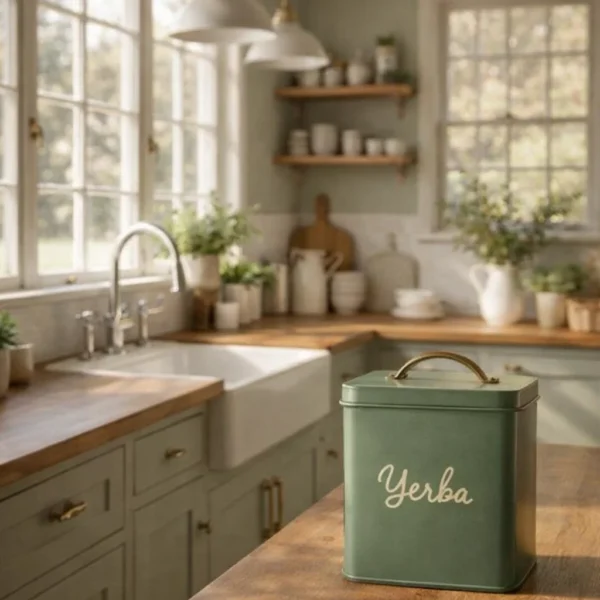 Sumá un toque cálido y natural a tu cocina con esta lata para yerba de diseño simple y funcional. Su color verde suave combina perfecto con espacios tipo cottage o cocinas de inspiración nórdica, aportando armonía y estilo.