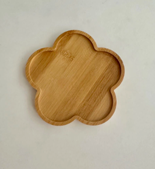 Posa taza de bambú en forma de flor. Tamaño: 14 cm de diámetro.