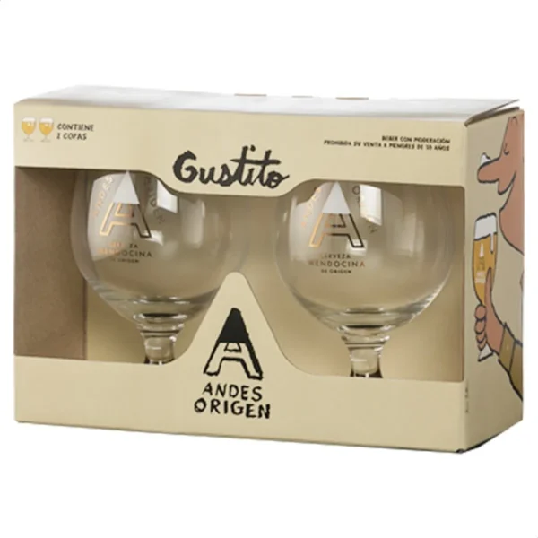 Set de dos copas de vidrio marca Andes con una capacidad de 300 cc cada una.