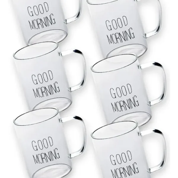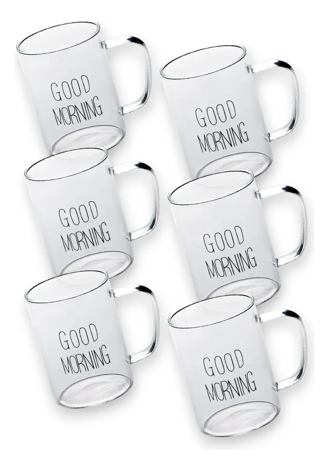 Set de 6 pocillos de vidrio con una capacidad de 200 ml, ideal para el café de las mañanas