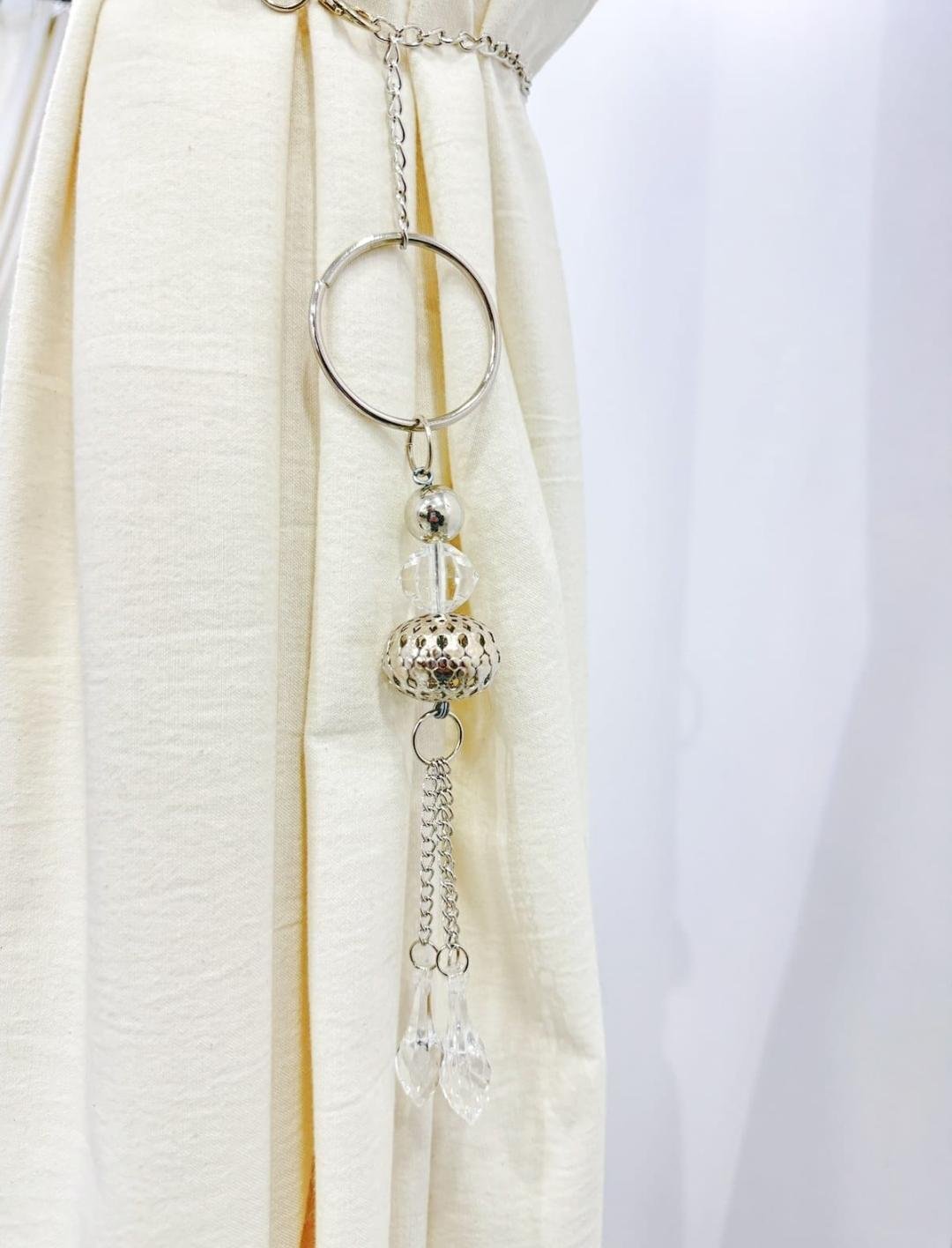 Sujeta cortina confeccionada con metal y caireles diamante unidas entre sí con cadenas labradas y un diseño inspirado en la cultura marroquí. Es una pieza de decorativa que combina lo elegante con la delicadeza y lleva tus espacios a otro nivel.