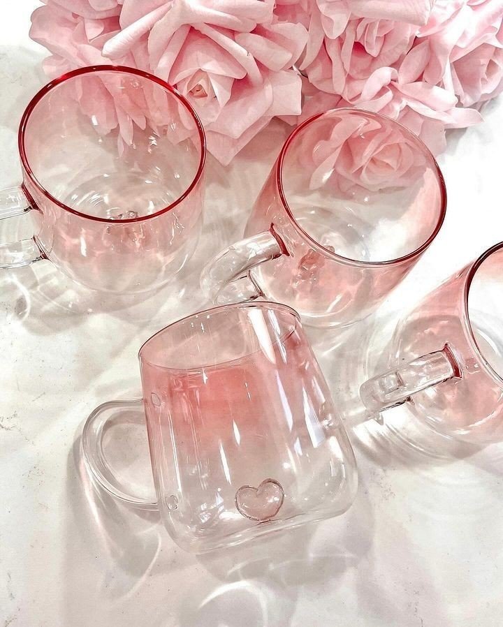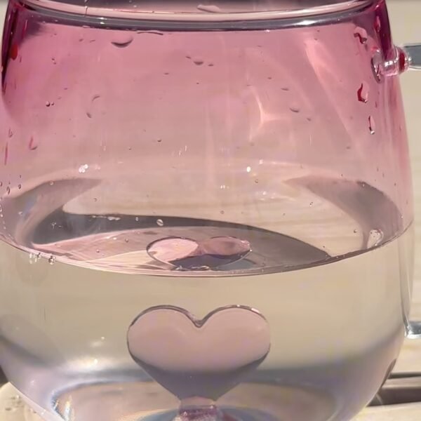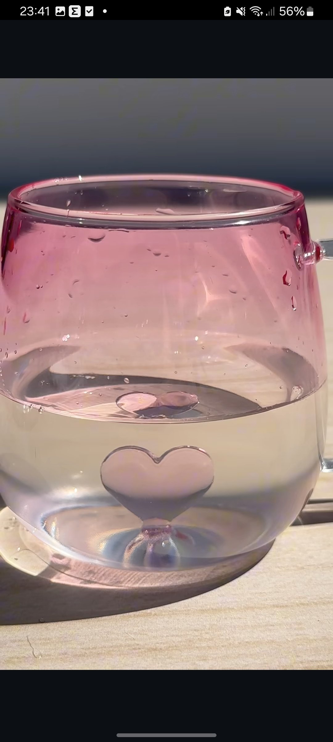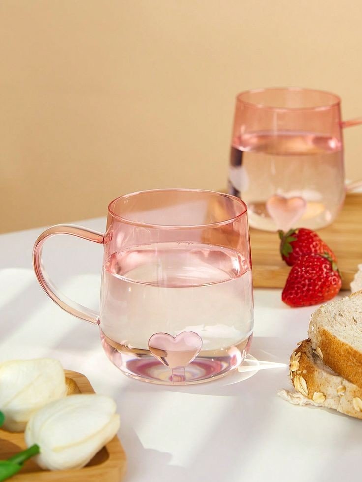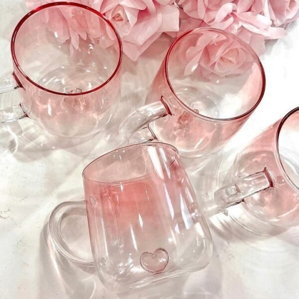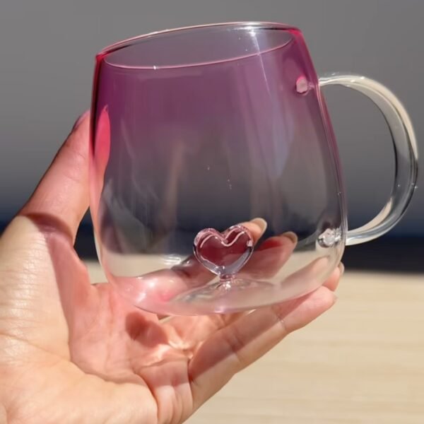 Taza de vidrio con una capacidad de 450ml y un aplique de corazón en su interior. En efectivo/transferencia 10% off
