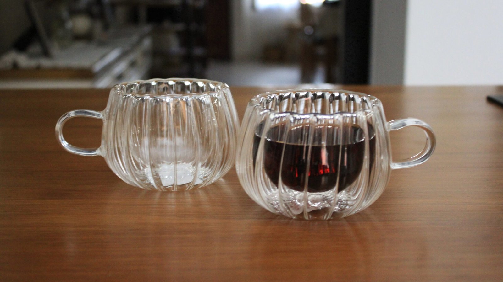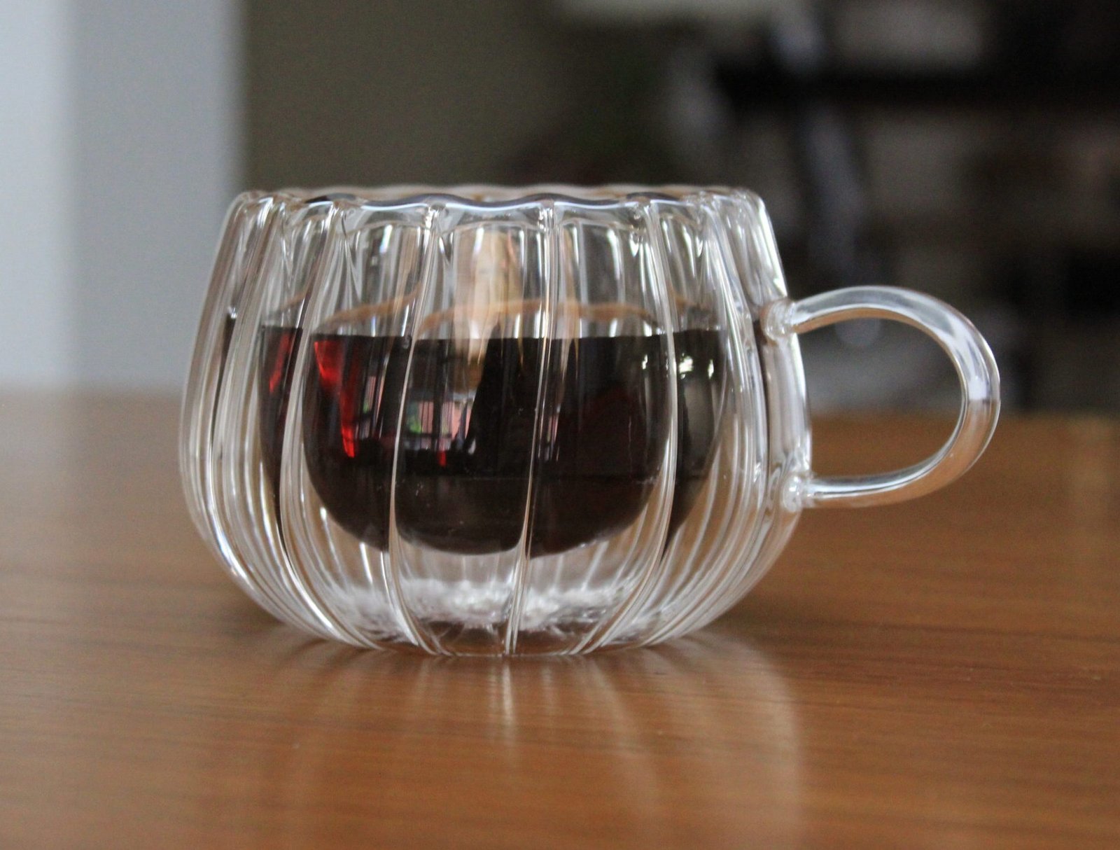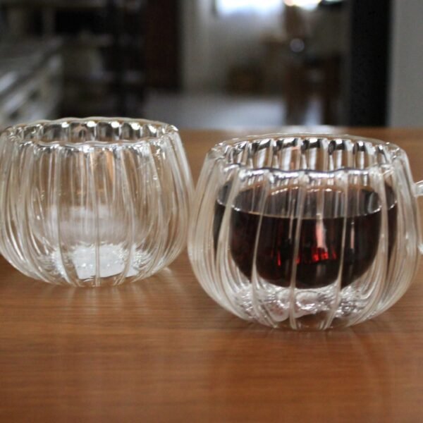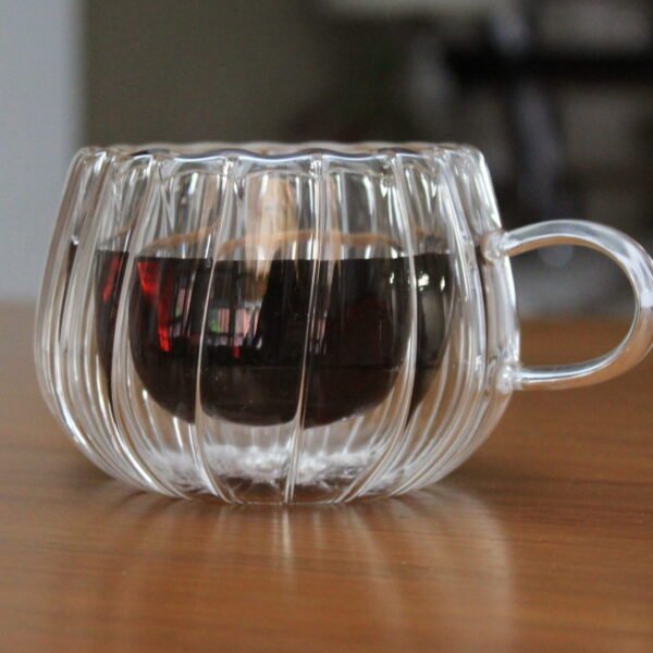 Taza doble vidrio con asa. Tiene una capacidad de 200 ml.