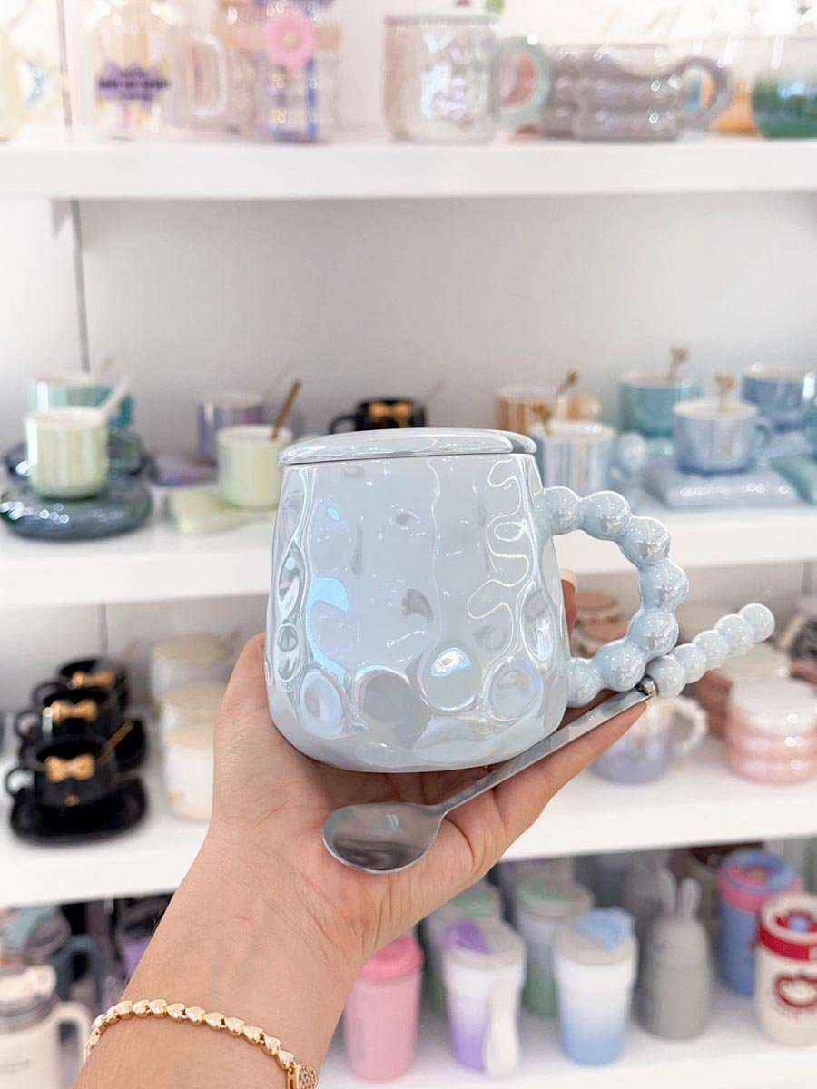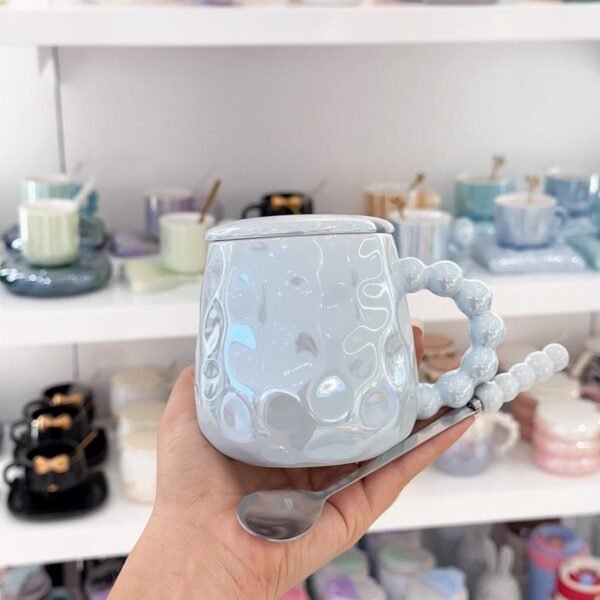 Taza de Cerámica Tornasolada con Cuchara y Tapa